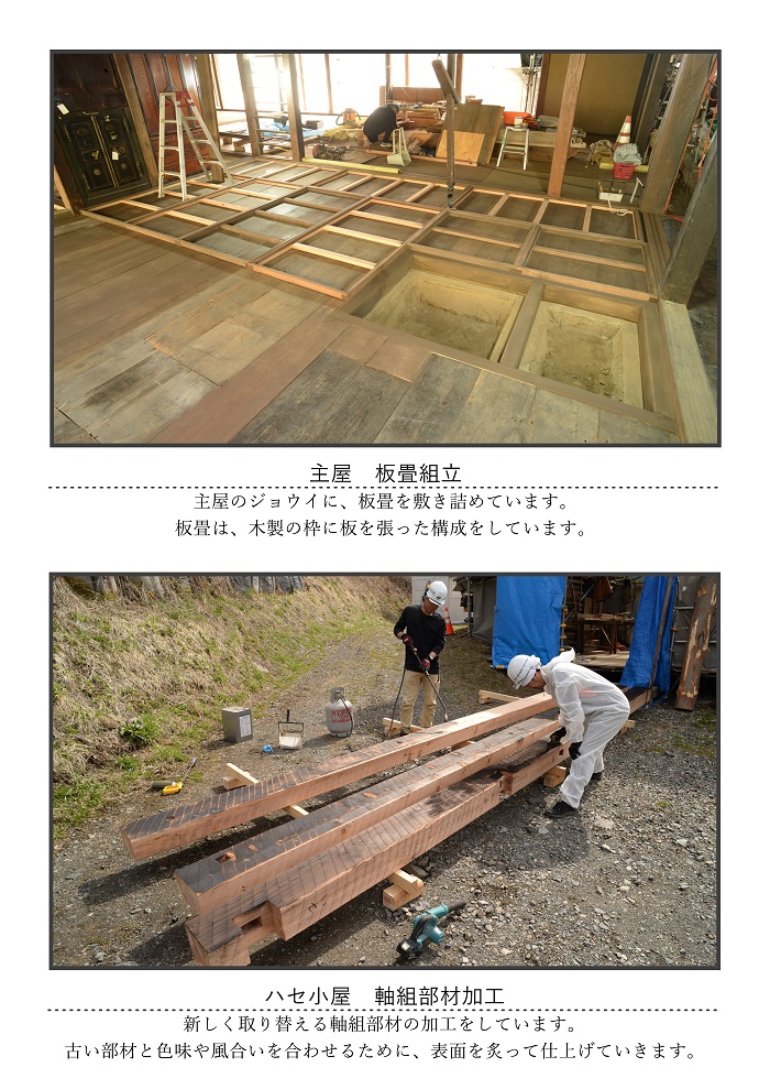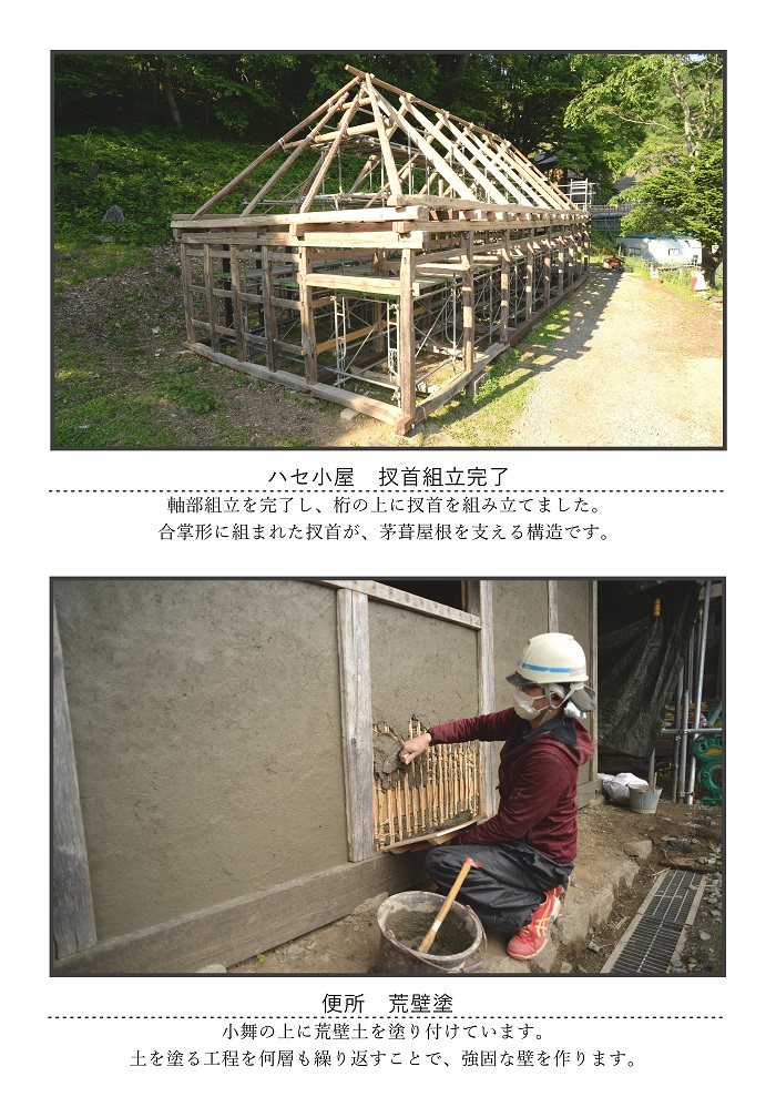 令和5年度は、曲り家の造作工事、稲荷社の屋根工事、大工小屋の屋根工事等を行う。
